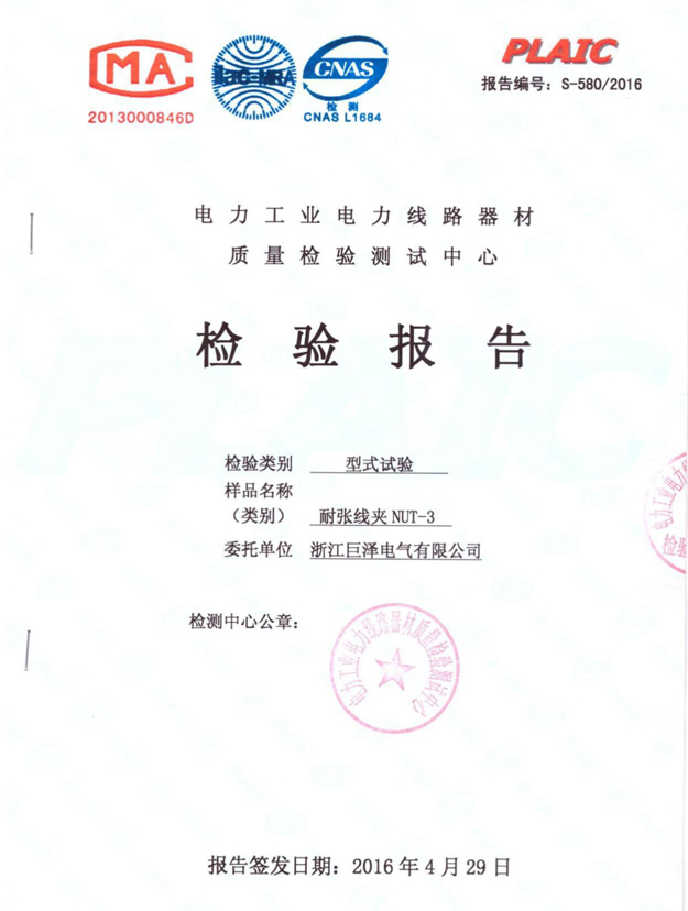 NYT-3耐张线夹(检验报告)