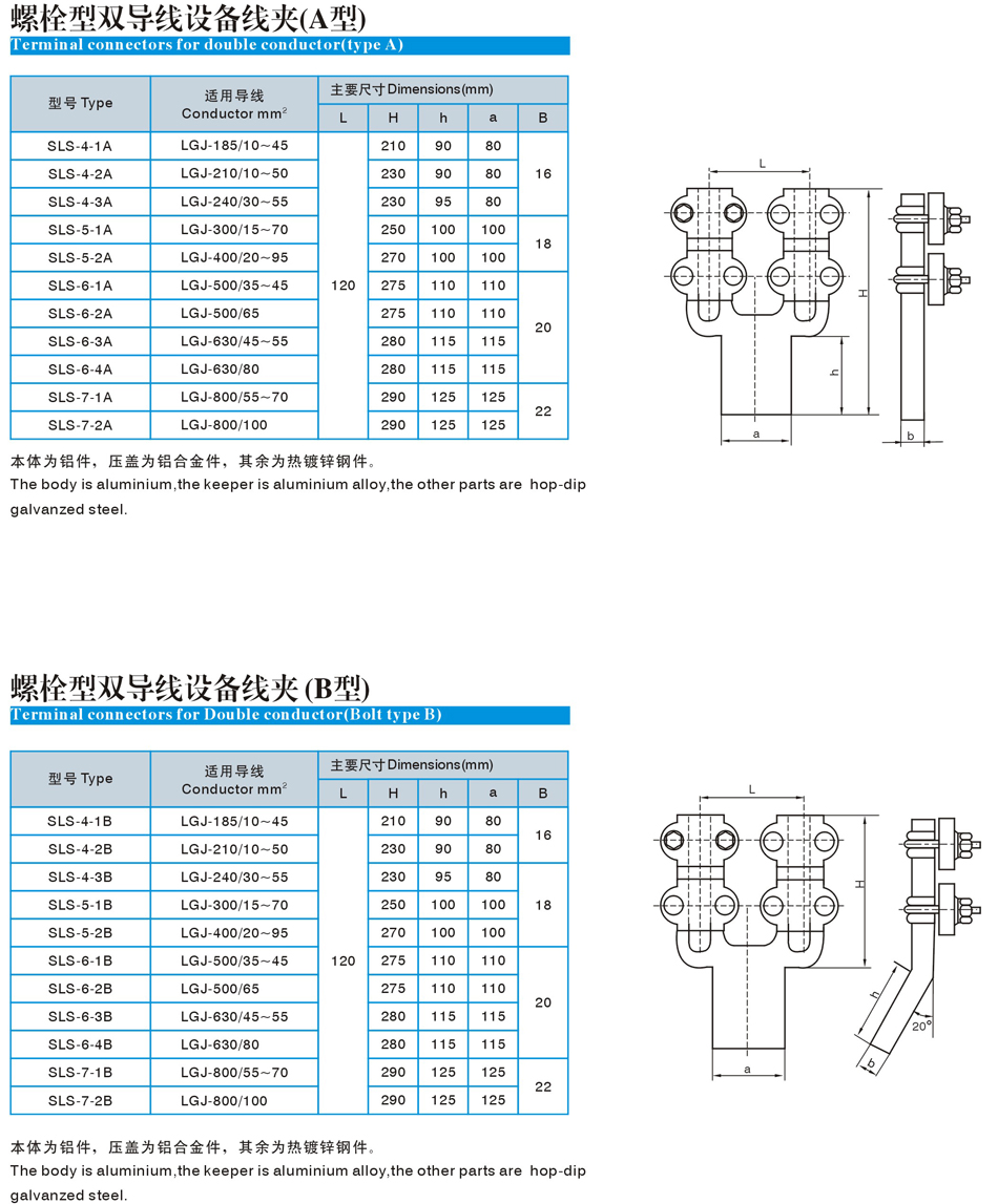 产品总汇>螺栓型双导线设备线夹(SLS)