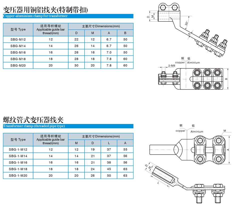 产品总汇>变压器用铜铝线夹(SBG、SBG-1)