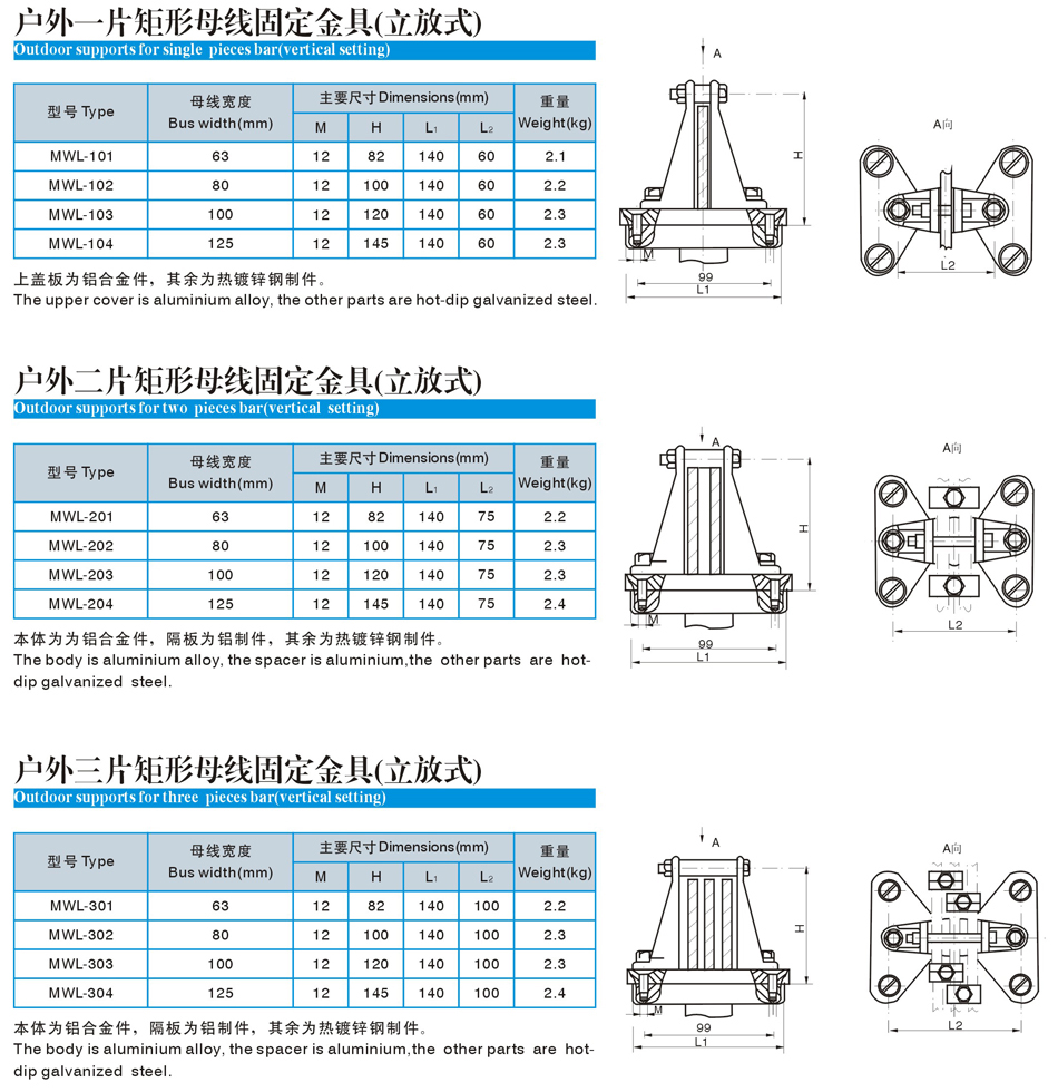 产品总汇>户内矩型母线固定金具(立放式)(MWL)