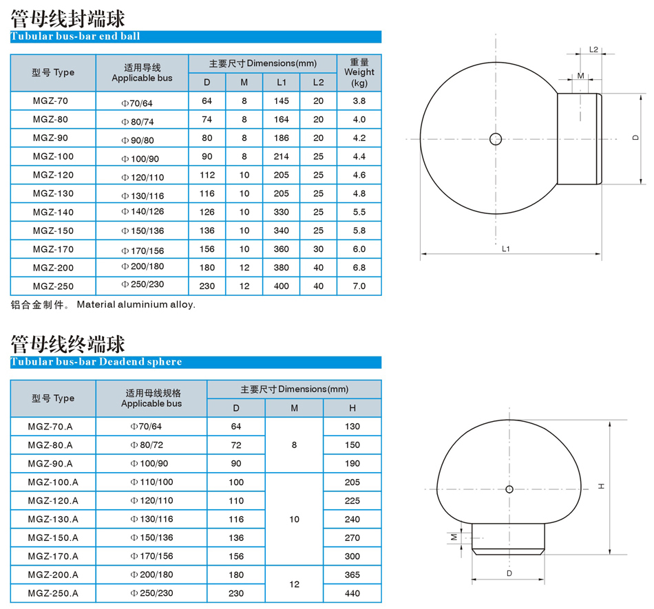 管母线封端球、终端球(MGZ)