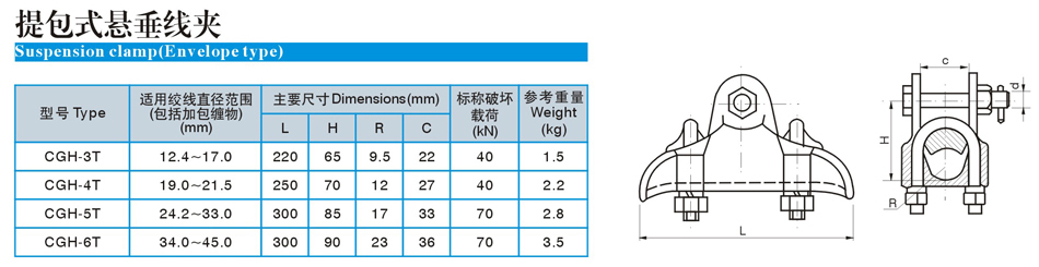 产品总汇>铝合金悬垂线夹(提包式)(CGH)