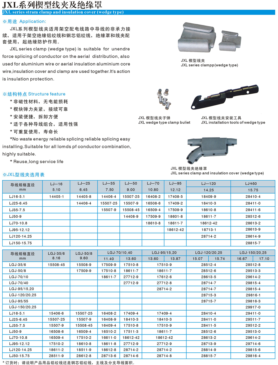 产品总汇>楔型线夹及绝缘罩(JXL)