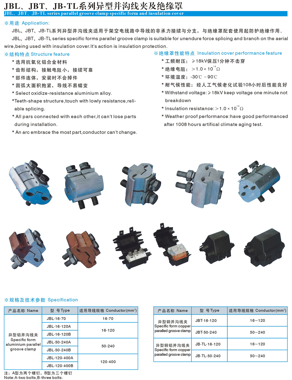 异型并沟线夹及绝缘罩(JBL、JBT、JBTL)