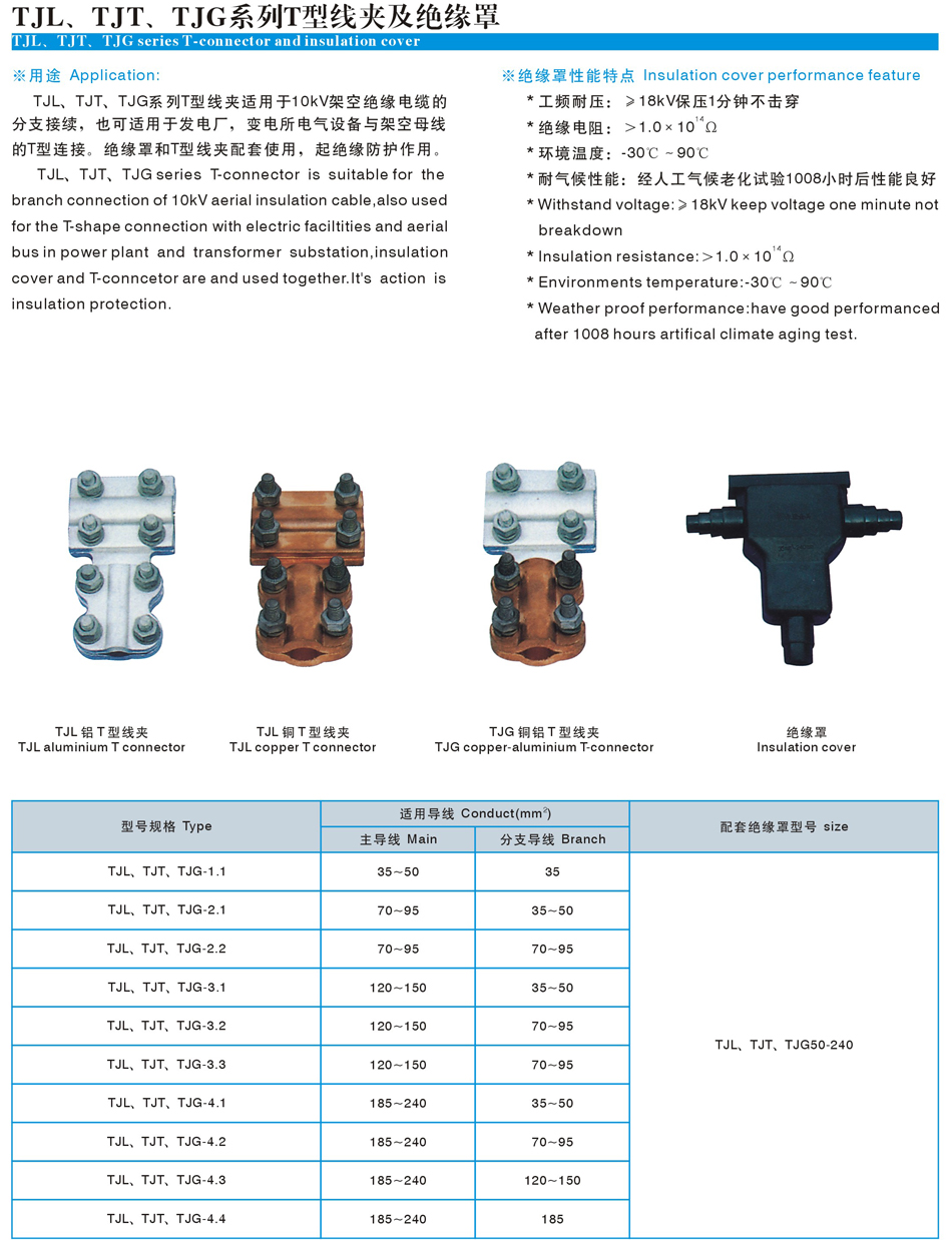 产品总汇>T型线夹及绝缘罩(TJL、TJT、TJG)