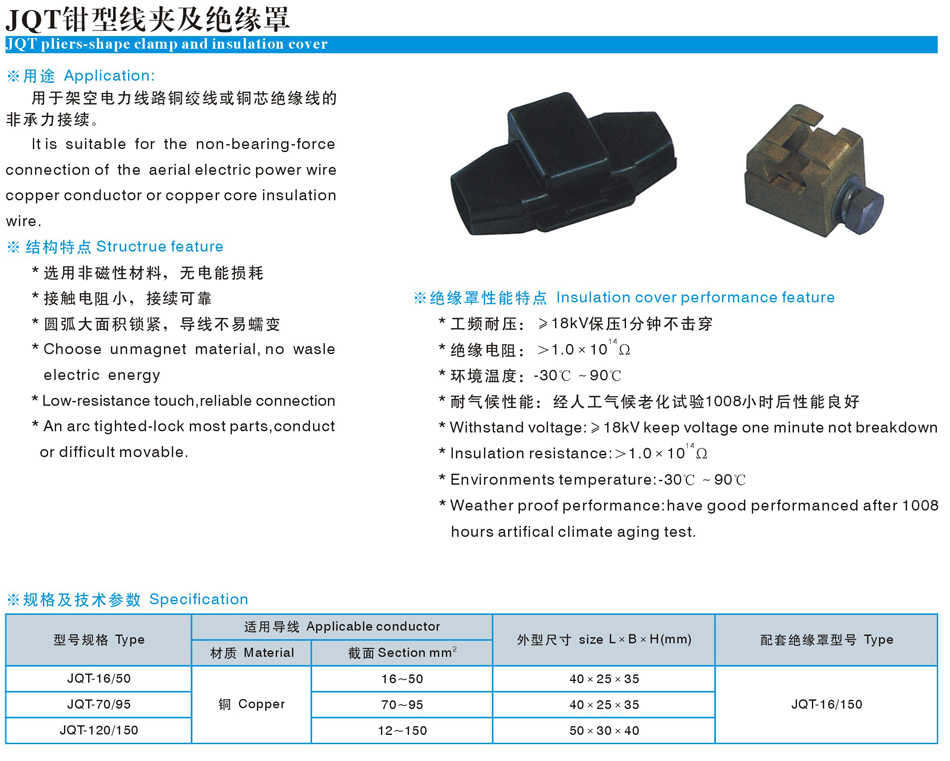 产品总汇>钳型线夹及绝缘罩(JQT)